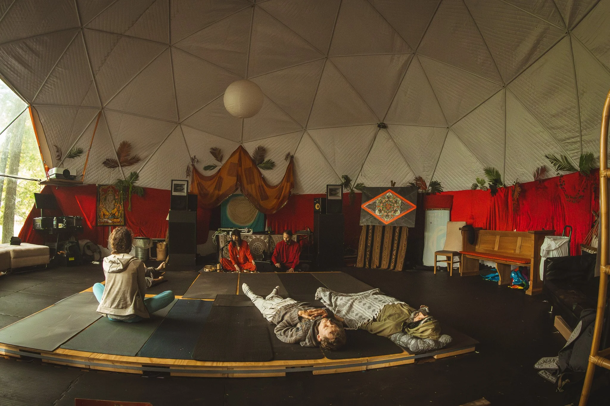 Through guided sessions, intuitive movement, stretching, and healing modalities, this area offers a chance to ground, restore, and listen inward. Whether you arrive to soften, to move, or simply to rest, you are welcome exactly as you are.